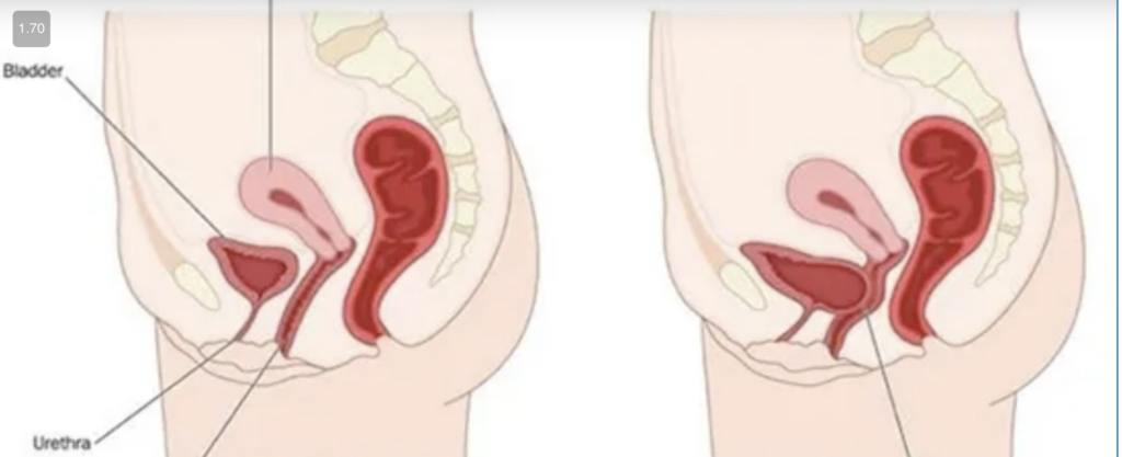 NORMAL – top left – womb is forwards, over the bladder, (Not sitting on top of impinging what the bladder must do)